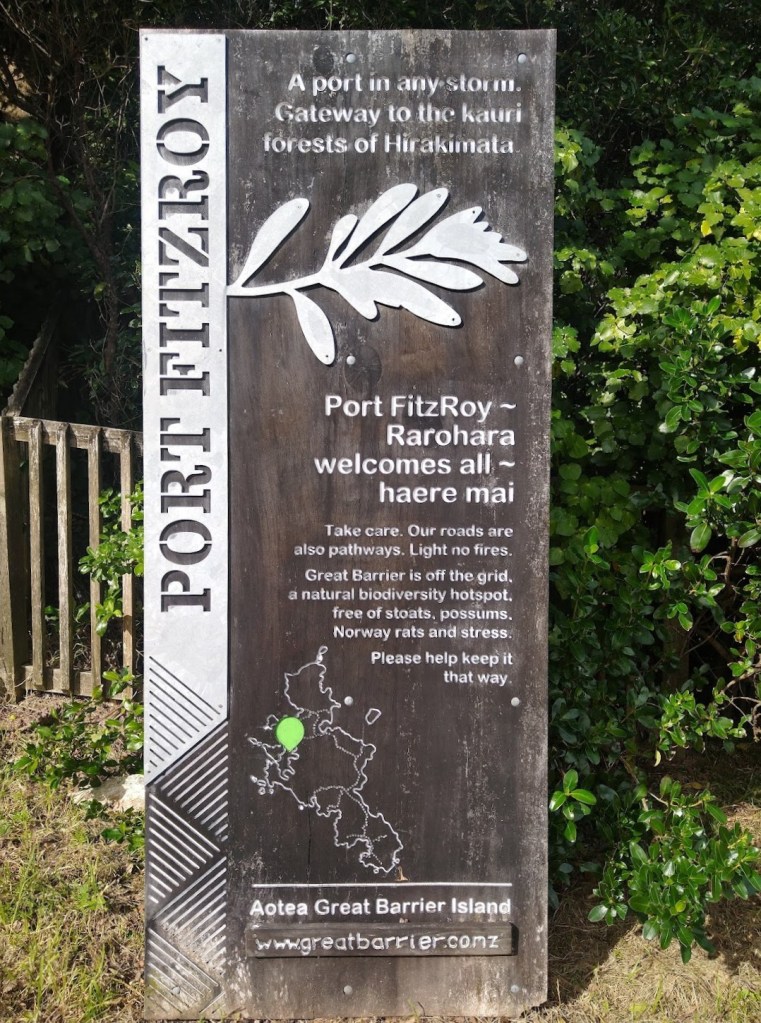 Today we motored around to Port Fitzroy and anchored just off the wharf. There seem to be a few more moorings in the bay now and less space for anchoring. We had a brief run ashore and visited the store. Ngozi bought a Vodafone sim card as our Skinny phones don’t work over here. Considering this place is part of Auckland city the facilities here for the locals are sparse, or maybe that’s the way they want to keep it.