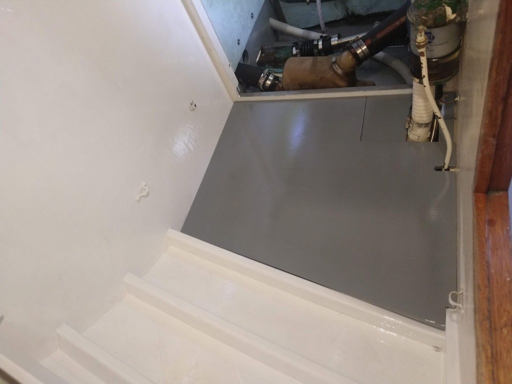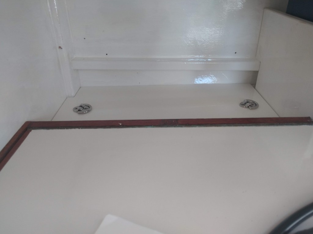 As an added bonus I have converted the space where the old pump used to be into a large and useful shelf area behind the chart table.
