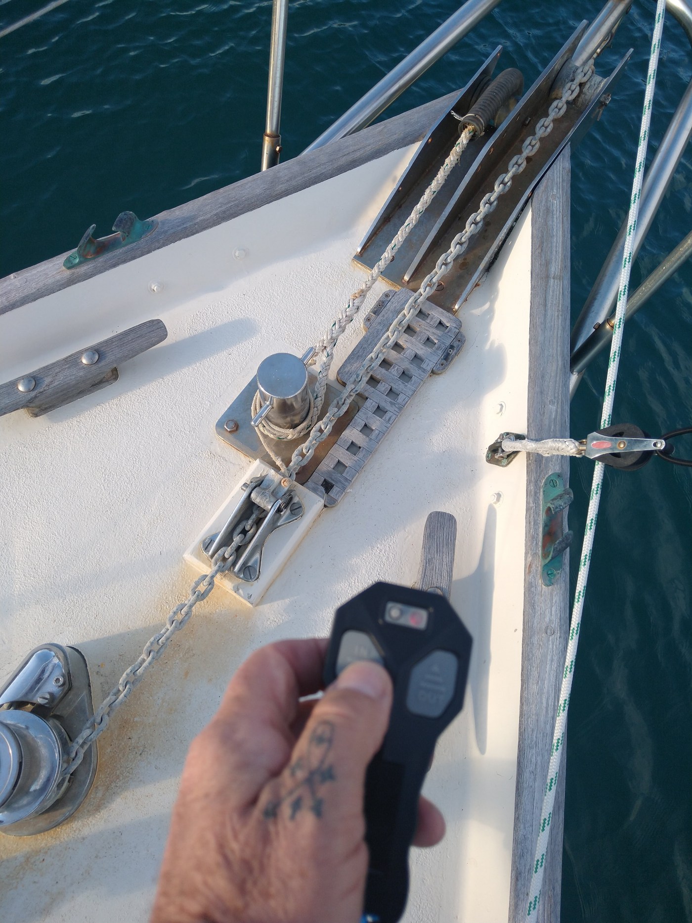 In practice I never use the remote switch in the cockpit as I cant see how the chain is leading and when the anchor is coming up to the roller. I much prefer to walk along to the bow and use the foot switches and get a visual on what is happening with the chain and anchor.