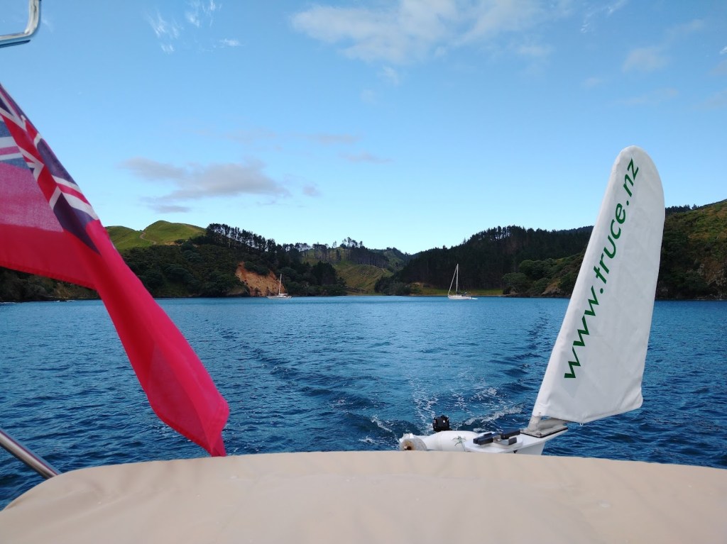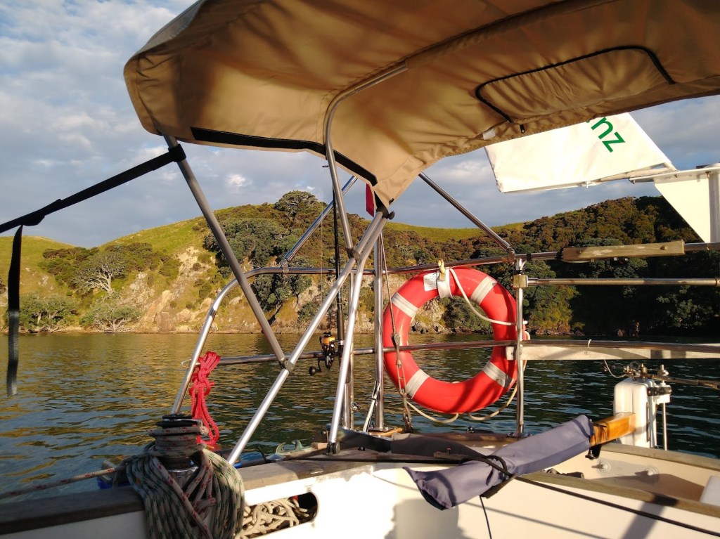 On the seventh of January we set forth, early morning, from Hobsonville Marina and took the ebb tide down and out of the harbour. A heavy rain squall in the Rangitito Channel reduced visibility and we used radar to pick out the buoys and other vessels. The rain soon passed and we had some wind, we set course for Great Barrier Island. Of course, the wind didn’t hold and we shaped course up towards Kawau Island, we managed to sail through Tiri Channel before the wind died. We motored the last couple of miles into Coppermine Bay. The anchorage at Coppermine Bay was delightful, peaceful and calm.