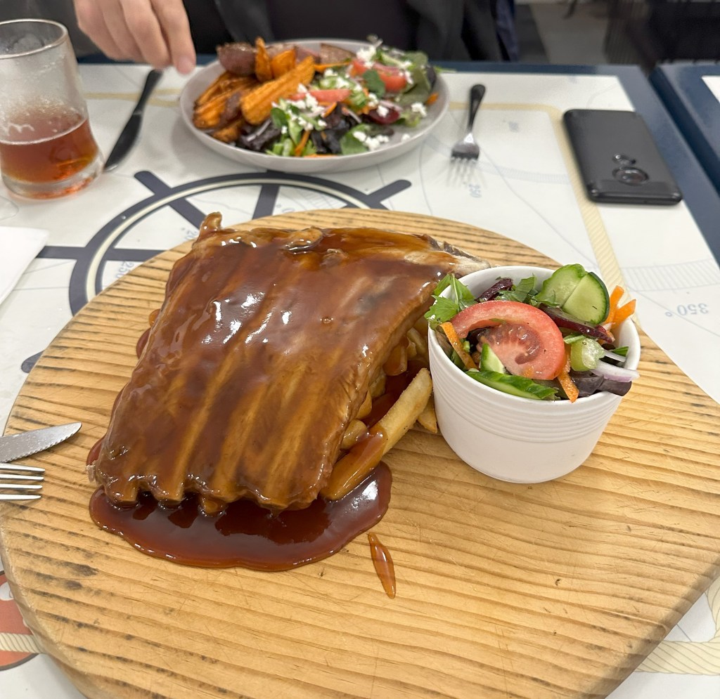 Ah, good to be ashore again after three day on board. A fine afternoon and evening was had with draft beer, a fish and chip supper and rum and coke to finish off with. The evening weather was good so we stayed anchored off the ‘town’.
