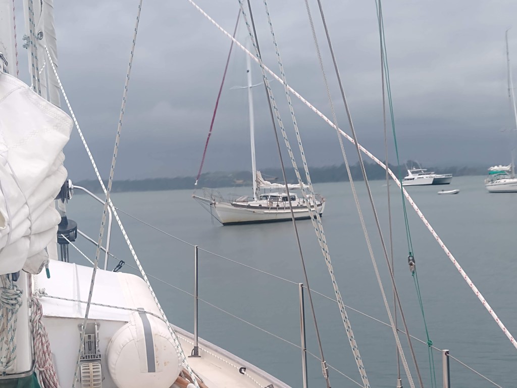 On Saturday 30th Ngozi departed in the morning to return to Auckland. I anchored off the town jetty. Truce didn’t like this and went wind against tide on me with the anchor chain leading astern and grinding on the hull. Then the heavens opened and it poured down. With the wind, rain, tide and waves getting into the dinghy was not looking inviting. I picked up the anchor and moved inshore just off the fuel jetty where I found better conditions. Eventually, I delivered Ngozi ashore safe and sound and after a few minutes she had scored a lift into Kaeo where she was to catch the bus to Auckland.
