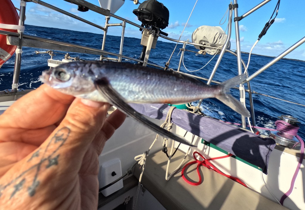In the afternoon I made some fresh water, as usual I ran the feed pump for ten minutes to flush the pipes before switching on the high pressure pump. After a few minutes I realised the valve to the drain line was open and I was filling up the bilge with seawater. What a day! I set about pumping the bilge dry and doing a bilge clean. Thirsty work in 36 degrees temperature.