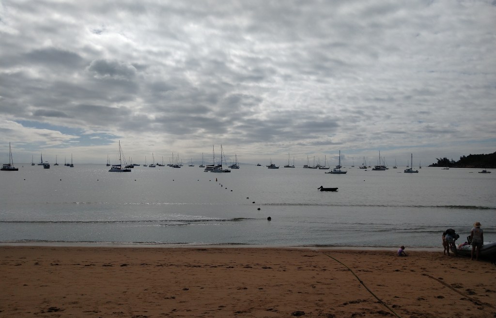 There was a bit of easterly swell entering the bay causing us to roll a bit, but not uncomfortable. After lunch we went for a walk ashore, little swell waves on the beach made for a fun landing from the dinghy. There are good views from the shore back to the mainland and the surrounding islands.