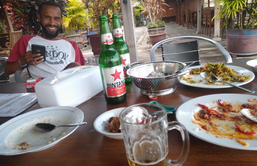 There is a restaurant and bar. I was soon tasting the wares, wonderful to be sitting ashore in a cooling breeze overlooking the boats in the bay and drinking cold beer. I am here for Christmas and the New Year, a bit early but better to be early than rushing to make an ETA. Time to relax and chill out. Truth is that I am quite exhausted after the trip from Saumlaki. The constant heat, lack of wind and almost daily motoring have worn me out. I am looking forward to recuperating and a family visit for Christmas and New Year.
