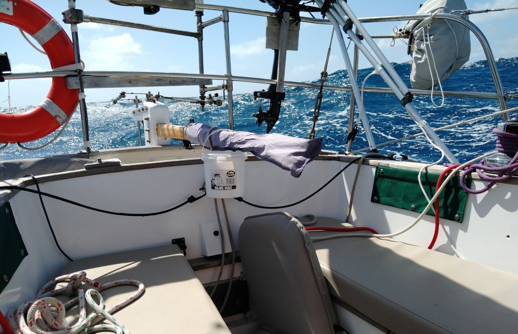 The following day, Sunday, I was up early and eager to get going. By 08:00 we were clear of Kawau Island and sailing in a light S’Wly breeze on a rhumb line for Man of war passage, Great Barrier Island. The wind alternated between light and very light. In the light wind Mickey the windvane managed to steer and for the very light we switched to the Pelagic tiller pilot which did a very good job. I am liking the Pelagic so far.