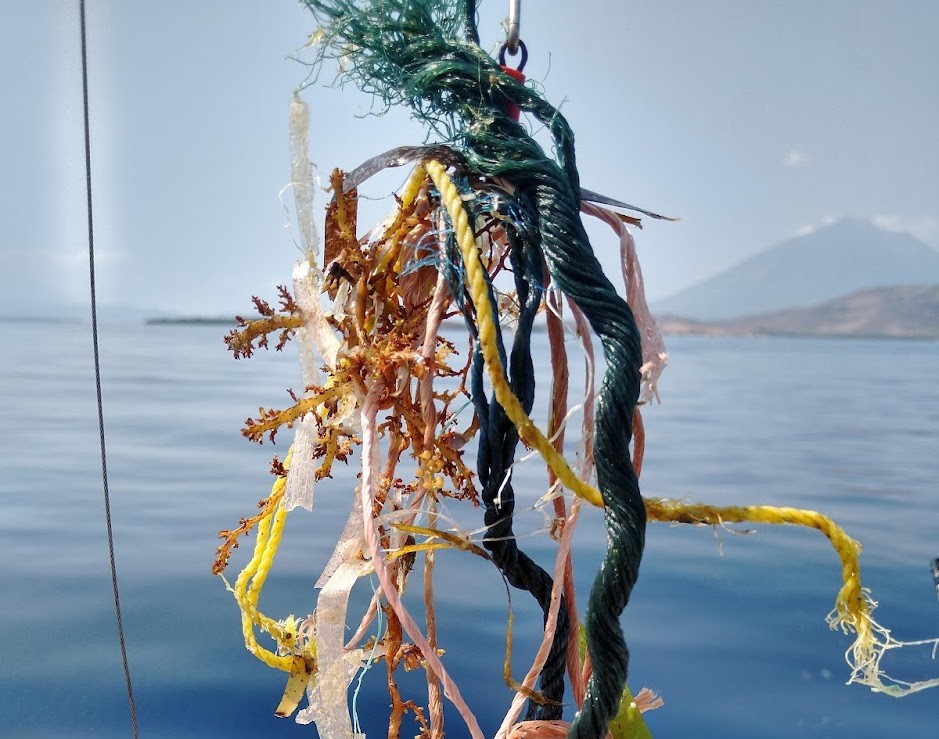 The strong currents seemed to attract a tremendous amount of floating rubbish, mainly plastic. Much of the plastic seems to live in the first meter of water, suspended just below the surface and only visible as you pass close by over it. A whale was breaching in the midst of all this floating garbage, so sad to see such a beautiful creature amongst the trash. I have given up dragging a lure behind the boat, all I catch is plastic and have been constantly cleaning the garbage off the hook. On one particular haul I caught five types of fishing gear.