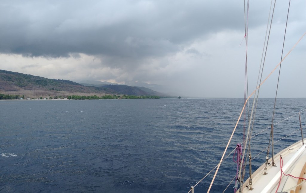 From Pulau Alor it was an eighteen-mile run across to Kabir on Pulau Pantar. The distance between the islands and anchorages is becoming less now and from here to Bali onwards I should be able to day hop along the island chain. Approaching Kabir we had a large thunder cloud ahead. I was hoping for some refreshing rain, all we got was a few drops that didn’t even wash the decks.