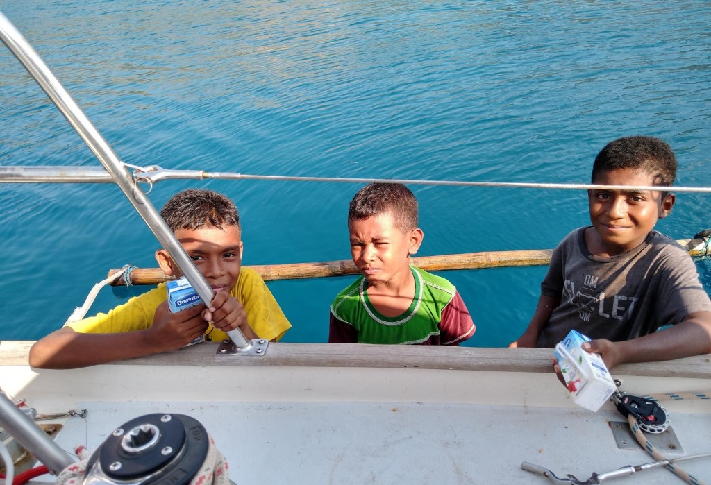 It didn’t take long for the local children to find something to hitch a ride on and come and visit. A yacht arriving must be the equivalent of Mr Whippy arriving in the street for NZ kids. Of course they want stuff and unfortunately I don’t have any kids stuff to give out. But they are grateful for anything and drinks and food are always welcomed by kids.