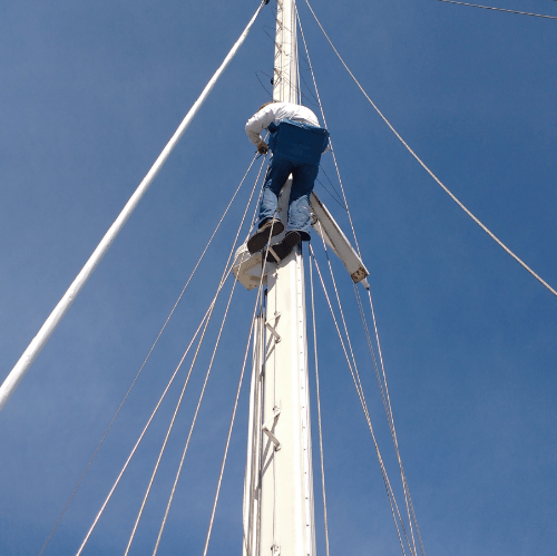 Inspecting Yacht Truce Rig. Photo Ray Penson